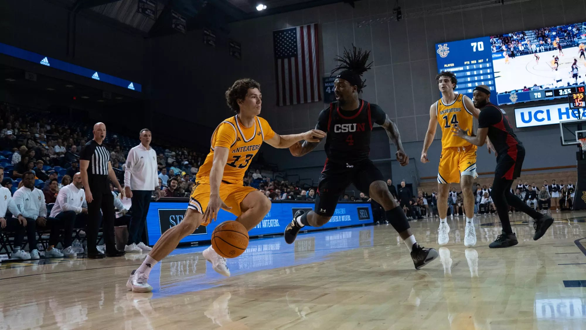 7:00 PM: UC Irvine at CSUN — GAME OF THE NIGHT. The Anteaters (18-10, 11-5) have lost 3 of their last 5 games to allow the tightening of the Big West race. UC Irvine is playing its final road game of the season, with home games remaining vs. UC Santa Barbara, Cal Poly and UC Davis. Kyle Evans has recorded 4 straight doubles doubles and continues to lead the nation in blocks with 96 (3.43 per game). Evans is just 10 blocks behind the UCI/Big West single-season record of 106 set by Mamadou Ndiaye in 2013-14. The Matadors (18-10, 11-5) are the hottest team in the conference, having won 7 straight games to pull into a 1st-place tie with UCI and Hawai’i. CSUN has the most favorable schedule remaining, with games vs. the bottom 3 teams in the Big West. Guard Josiah Davis was unstoppable last week, averaging 26.0 points, 8.5 rebounds and 8.0 assists in road wins at UCSB and LBSU. Davis is averaging 7.2 assists on the season, the 4th best figure in the nation.